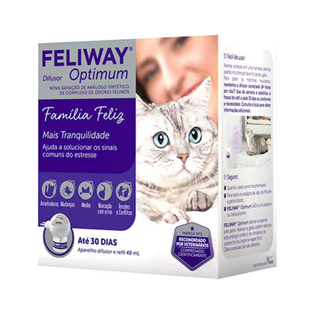 O Feliway Optimum Difusor + Refil é uma solução eficaz para ajudar a melhorar o bem-estar dos gatos, promovendo um ambiente mais tranquilo e harmonioso. Este difusor é projetado para liberar uma combinação avançada de feromônios que ajudam a reduzir os comportamentos indesejados relacionados ao estresse e ansiedade em gatos. Ideal para lares com múltiplos gatos, mudanças na rotina, ou situações que possam causar desconforto aos felinos.